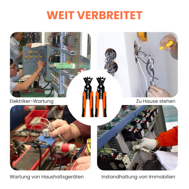 Praktisches Multifunktionswerkzeug: Erfüllen Sie eine Vielzahl von Elektriker-Betriebsanforderungen wie Schneiden des Drahtes, Abisolieren, Aufwirbeln, Wickeln, Schraubenschlüssel. Es ist niemal notwendig, die Zange während des Gebrauchs häufig zu wechseln, was die Arbeitseffizienz verbessern kann.
