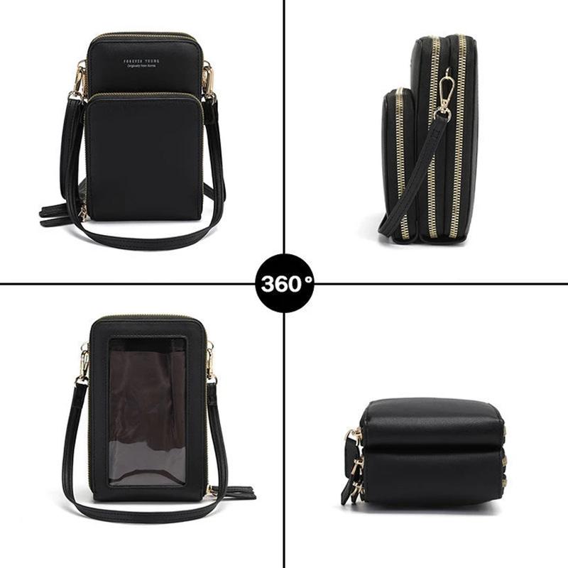 Es gibt 3 Haupttaschen, 8 Kartensteckplätze und 1 Führerscheinsteckplatz für freie Fenster sowie einen Touchscreen-Telefonhalter, der den täglichen Speicherbedarf einer Power Bank und Kreditkarten, Mobiltelefonen, Kosmetika, Reisepässen, Schlüsseln und Änderungen erfüllt.
