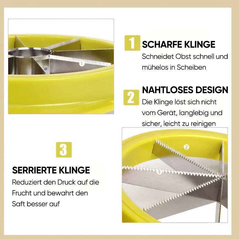 Hocheffiziente 4-in-1 Schneidemaschine: Mit unserem Obst- und Gemüseschneider können Sie Obst, Gemüse und hartgekochte Eier perfekt schneiden. Dieser Hobel wurde sorgfältig entwickelt, damit Sie jede Art von Obst und Gemüse schnell und einfach in Hälften, Scheiben und Keile schneiden können.
