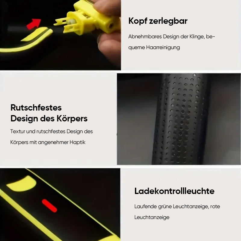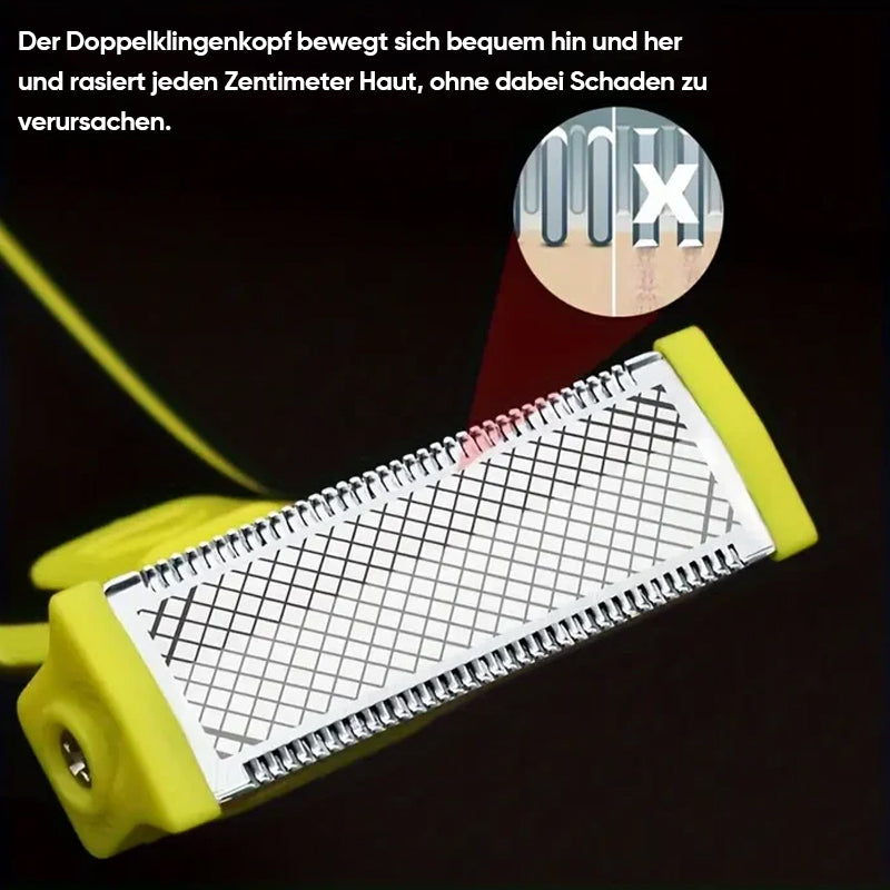 Der leistungsstarke Motor in Verbindung mit einer hochwertigen doppelschneidigen Klinge aus Edelstahl sorgt für schnelles und effizientes Trimmen ohne Ziehen oder Hautreizungen. Die Klingen sind abnehmbar und waschbar. Spülen Sie die Klingen einfach unter fließendem Wasser ab, um sie schnell und hygienisch zu reinigen. (Hinweis: Tauchen Sie den gesamten Trimmer nicht in Wasser.)