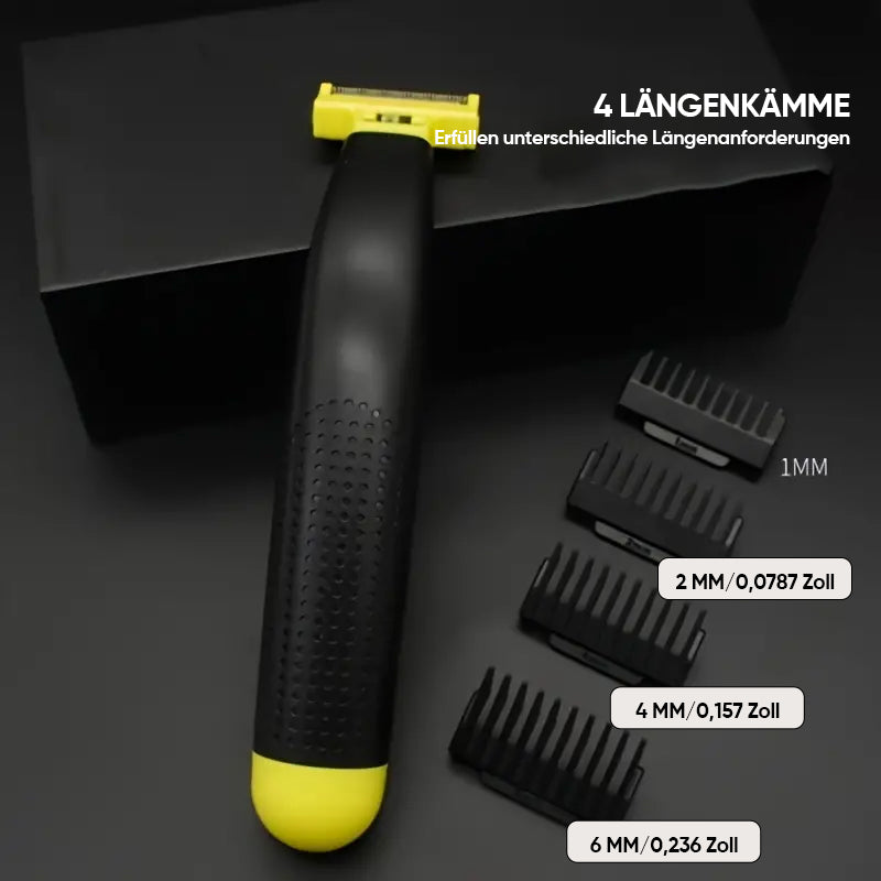 Es verfügt über 4 austauschbare Schneidköpfe (1 mm, 2 mm, 4 mm, 6 mm), um den Anforderungen unterschiedlicher Längen gerecht zu werden und eine präzise integrierte Gesichts-, Bart- und Körperpflege zu ermöglichen. Macht Männer attraktiver und selbstbewusster.