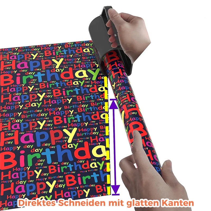 SPART IHNEN ZEIT – Kein Abmessen, Falten und doppeltes Raten mehr! Verpacken Sie Geschenke mit halbiertem Zeit- und Arbeitsaufwand. Messen Sie einfach ab, wie viel Papier Sie benötigen, schneiden Sie das Papier mit dem verschiebbaren Papierschneider ab und beginnen Sie mit dem Verpacken!