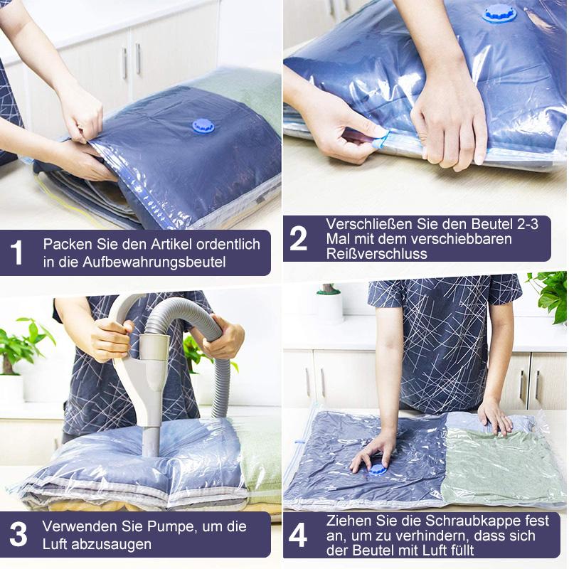 Das kompakte Design spart 77% Speicherplatz - 8 x Premium- Vakuum-Aufbewahrungsbeutel für eine Reihe von Artikeln! Bewahren Sie Ihre Bettdecke, Bettwäsche, Handtücher, Decken und mehr auf!