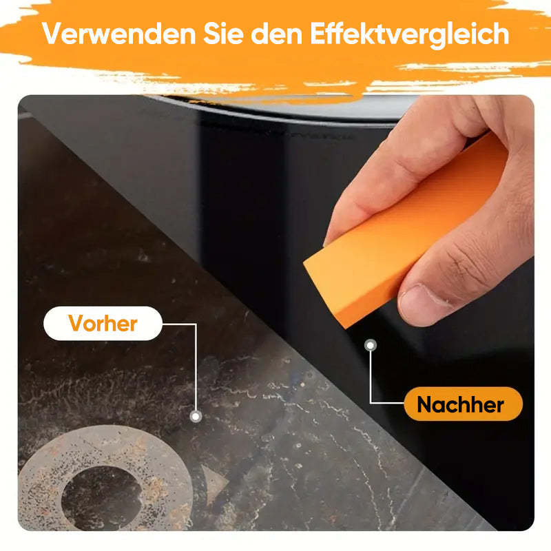 Multifunktional: Kann zum Entfernen von Wasserflecken auf Küchen- und Badezimmerarmaturen, hartnäckigen Flecken auf Herdplatten, schwarzen Flecken auf Topfböden, Rost auf Grillrosten, Schmutz in Fliesenfugen usw. verwendet werden.
