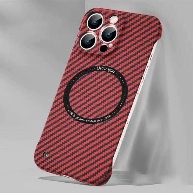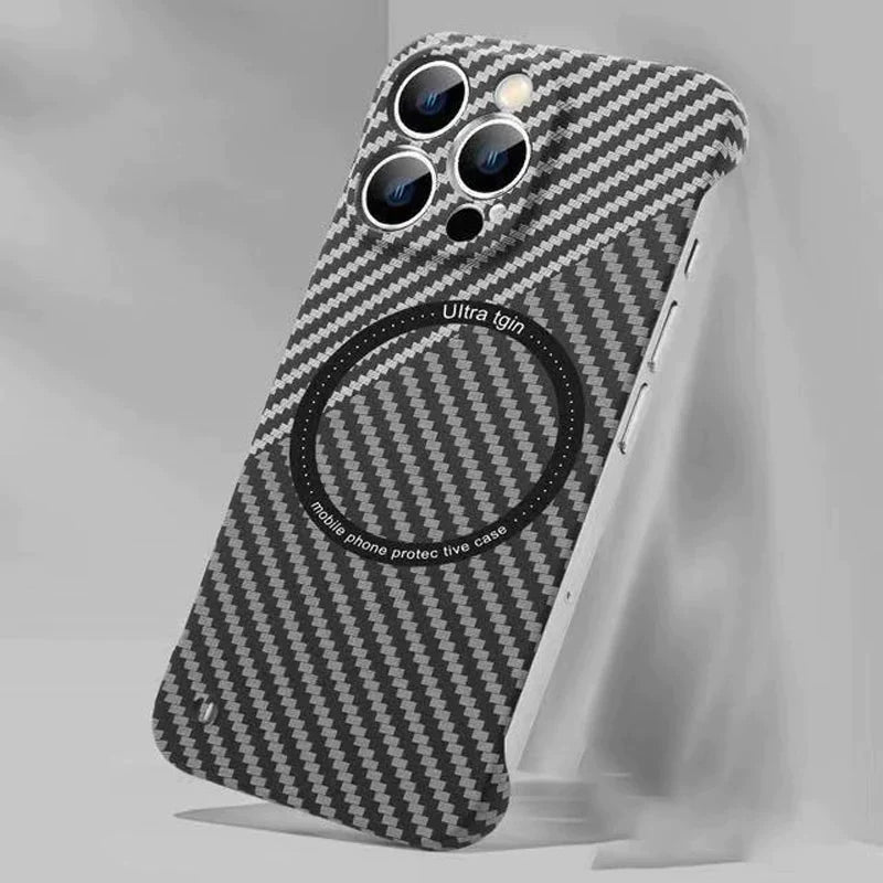 1 × Rahmenlose Magnetische Handyhülle aus Karbonfaser für iPhone