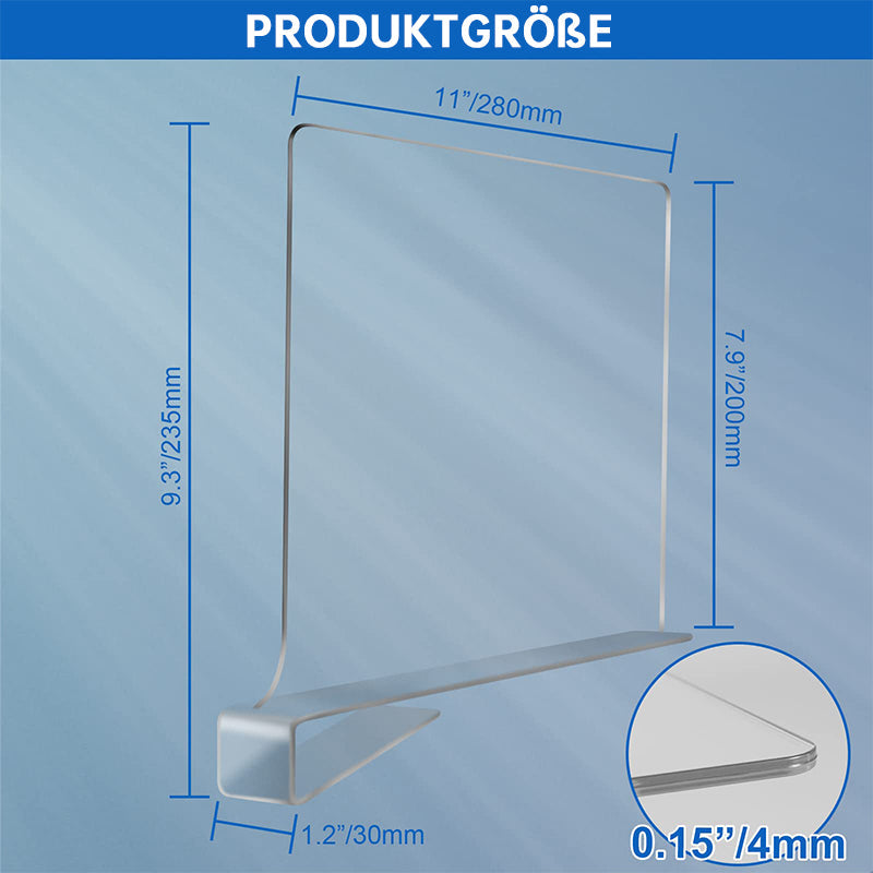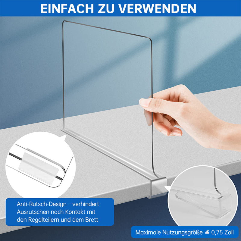 [Produktgröße]- Die Abmessungen jedes Schrankregalteilers: Höhe 9,3 Zoll * Tiefe 11 Zoll, und diese Regalteiler aus Acryl sind für Regale mit einer Dicke von nicht mehr als 0,8 Zoll geeignet.