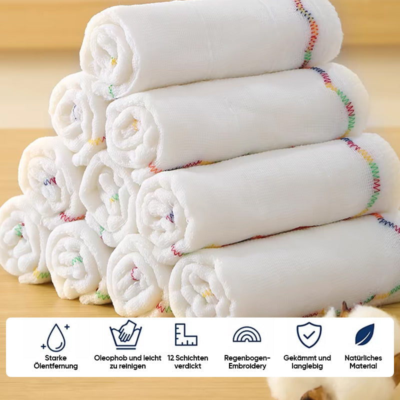 Super saugfähig und sanft: Das Tuch besteht aus verdicktem Baumwollgarn, das seine Saugfähigkeit erhöht und Öl und andere Flüssigkeiten mühelos aufsaugt. Seine weiche Textur sorgt für eine sanfte und dennoch effektive Fleckentfernung, ohne die Oberfläche der zu reinigenden Gegenstände zu beschädigen.
