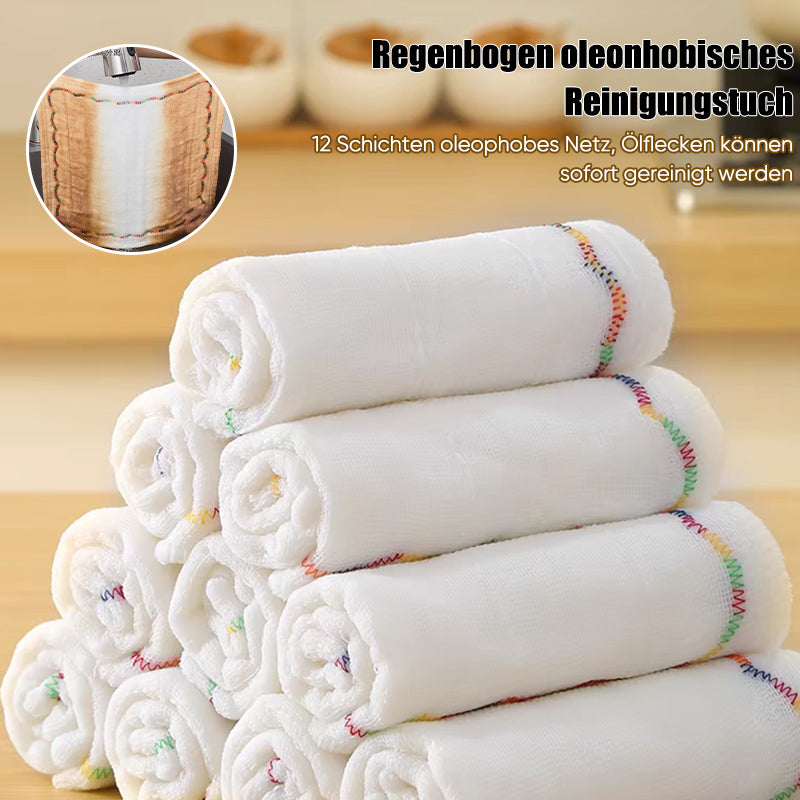 Regenbogen-Naht-Design: Mit seinen Regenbogennähten und der gesicherten Kante bietet dieses Reinigungstuch nicht nur eine hervorragende Qualität, sondern auch einen angenehmen Griff und ein ästhetisches Erscheinungsbild. Das gut durchdachte Design verbessert die allgemeine Benutzererfahrung und gewährleistet sowohl Funktionalität als auch Stil.