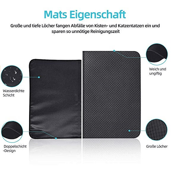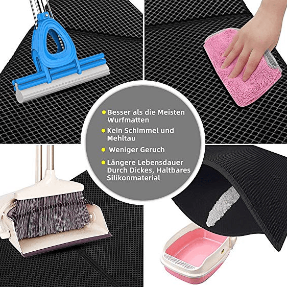 - Super Groß: Eine große unterlage für Katzenklo (70 × 55 cm) befreit Ihnen von der fummelige Aufräumarbeit. Die gesamte Matte kann bis zu 100% mehr Katzenstreu auffangen als andere Matten. Perfekt für Katzentoilette.