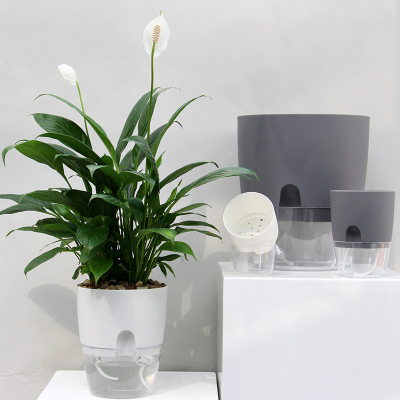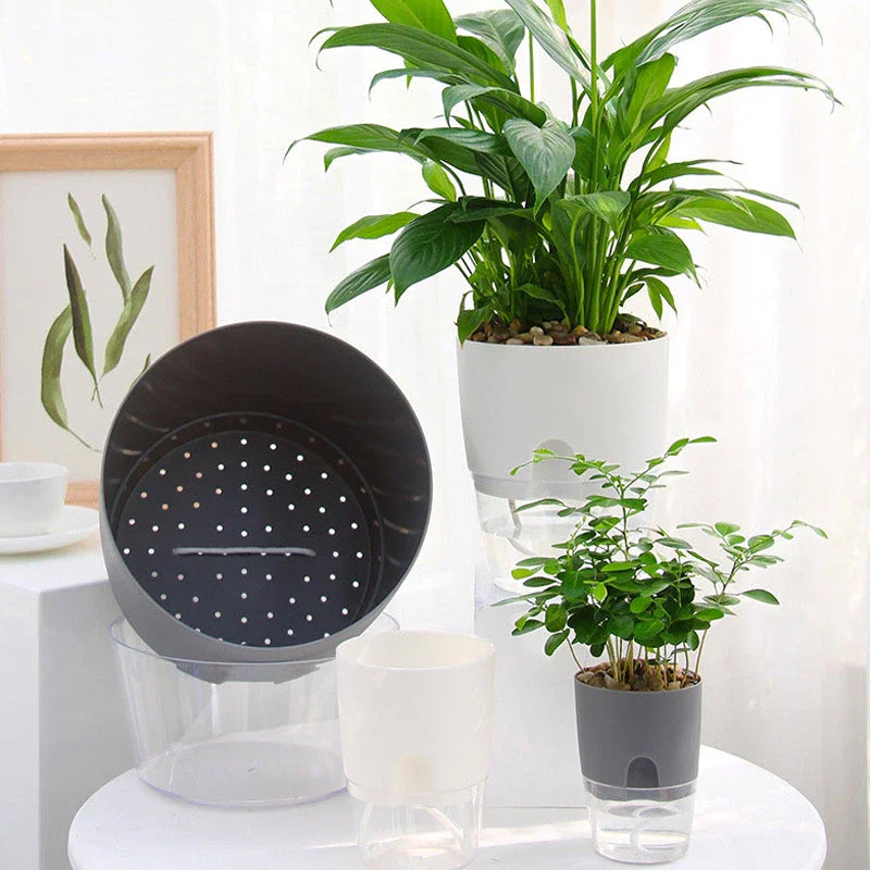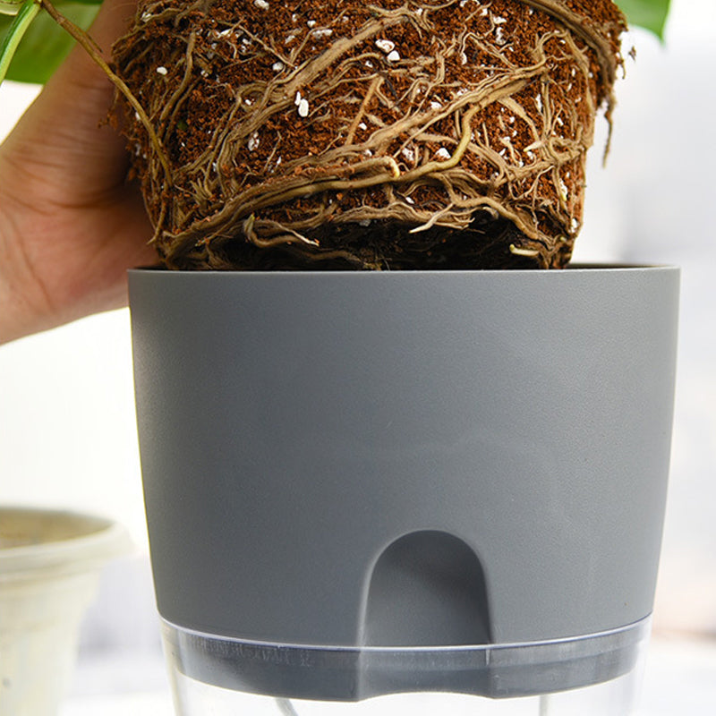 Die doppelschichtige Struktur ermöglicht die Speicherung von Wasser und Luft im Boden dieses Pflanzgefäßes. Der Topf mit Löchern für eine bessere Feuchtigkeit der Wurzeln und eine einfache Sauerstoffzirkulation verhindert das Absterben von Pflanzen durch Staunässe.