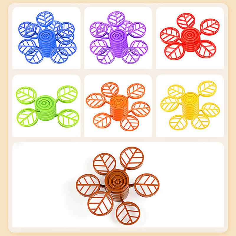 Lustiges Stapelspielzeug: Der stapelbare Regenbogenbaum hat die Form niedlicher Blätter. Für Kinder macht das Bauen eines Regenbogenbaums mit diesen entzückenden bunten Blättern jede Menge Spaß. Stapeln Sie die Blöcke einfach auf dem LKW oder auf den Blättern. Einfach genug für kleine Kinder.
