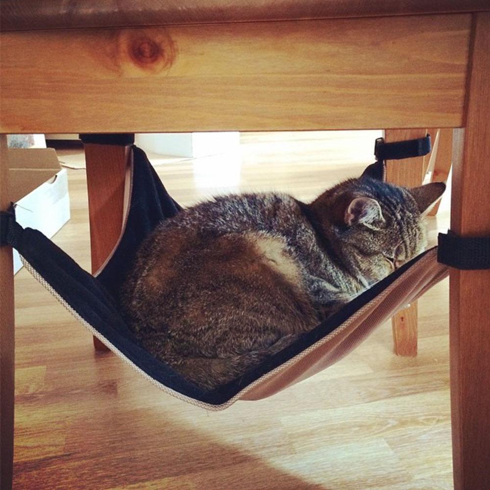 Wenn es nur eine Möglichkeit gäbe, bereits ungenutzten Raum zu nutzen, um Ihrem Kätzchen einen schönen gemütlichen Platz zum Schlafen zu geben. Diese Super Bequeme Katzenhängematte macht genau das!
