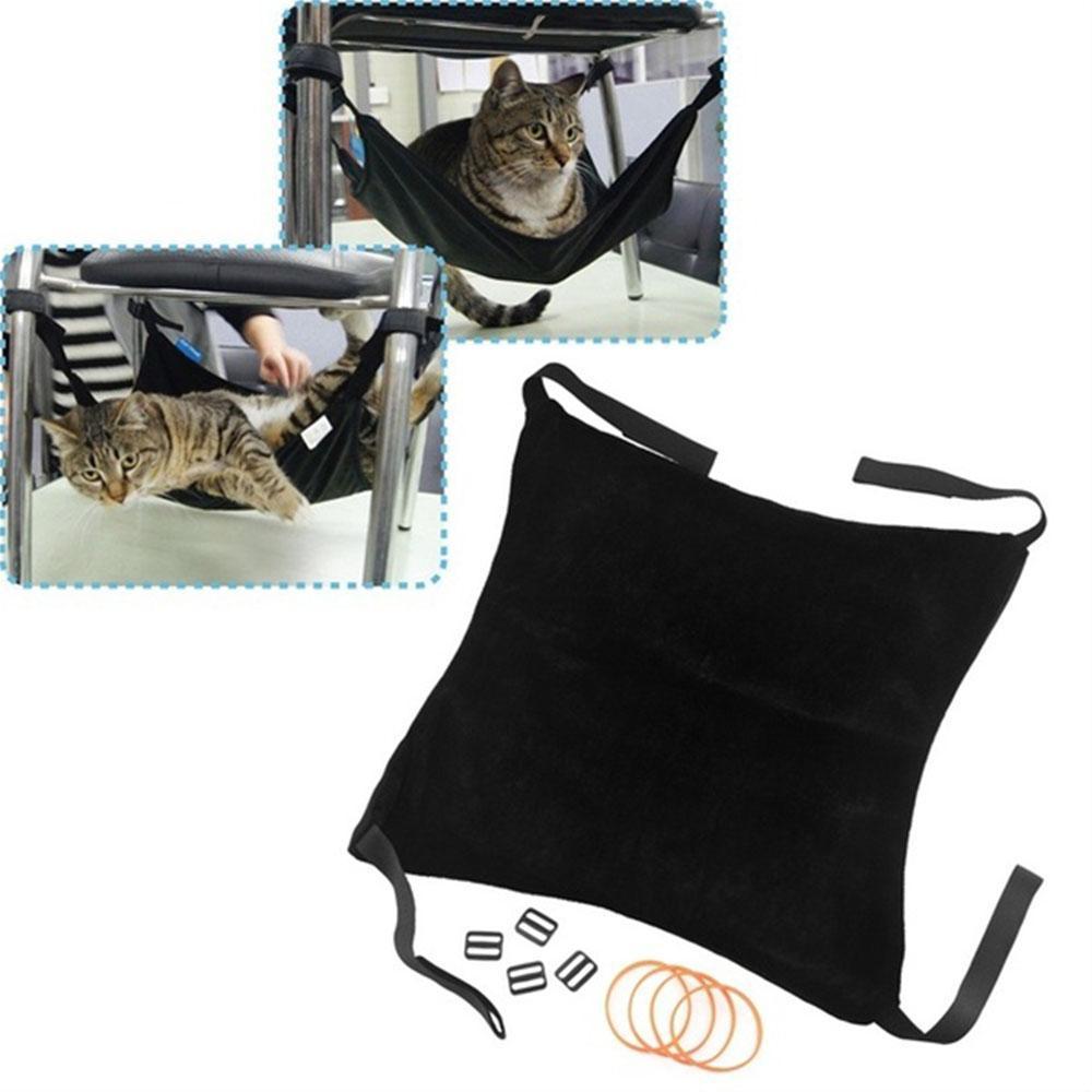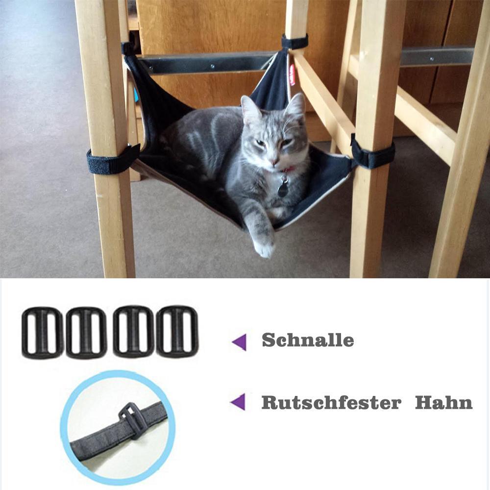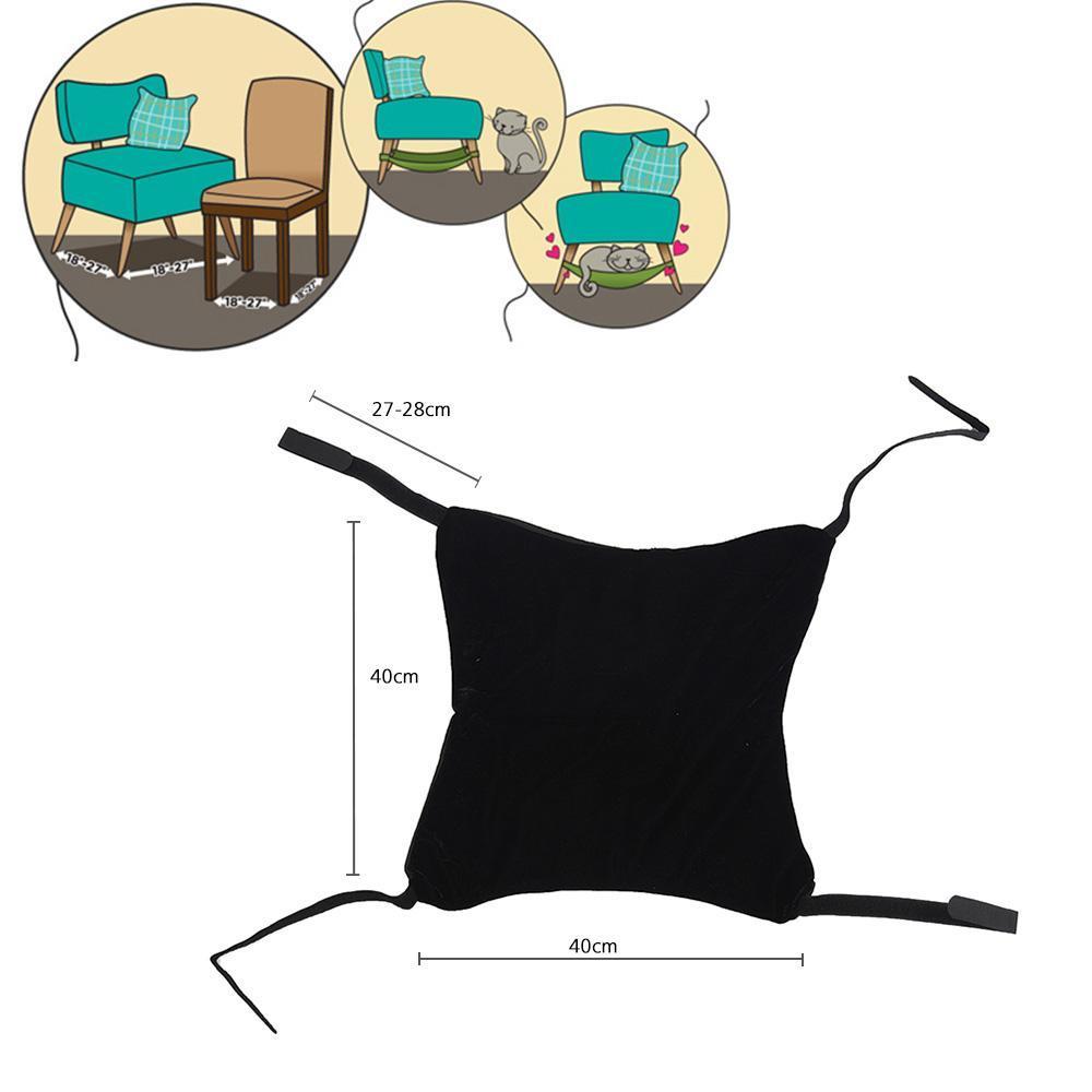 Die Hängematte unter dem Stuhl lässt sich in Sekundenschnelle befestigen, indem sie mit den vier an der Hängematte befestigten Gurten an jedem Stuhlbein befestigt wird. Sein einzigartiges Design ermöglicht es, auf den Beinen der Stühle zu sitzen und nicht nach unten zu rutschen, sodass Ihre Katze wie eine echte Hängematte in der Luft sitzt.