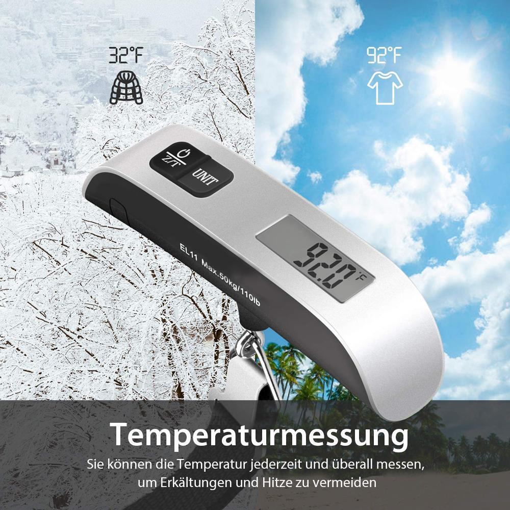 Für unterwegs gebaut: Wiegen Sie, bevor Sie losfahren, und stecken Sie die Waage in die Taschen, ohne übermäßiges Gewicht zu verursachen Thermometer-Temperatursensor in F ° und C °. Wissen Sie, dass sich Ihr empfindliches Gepäck in einem idealen Klima befindet