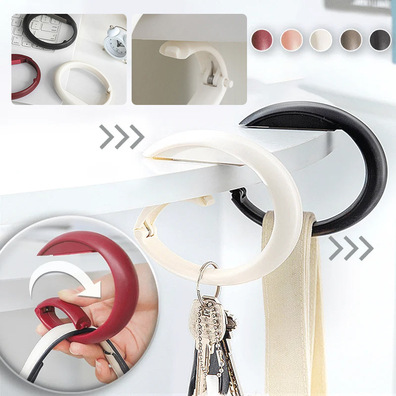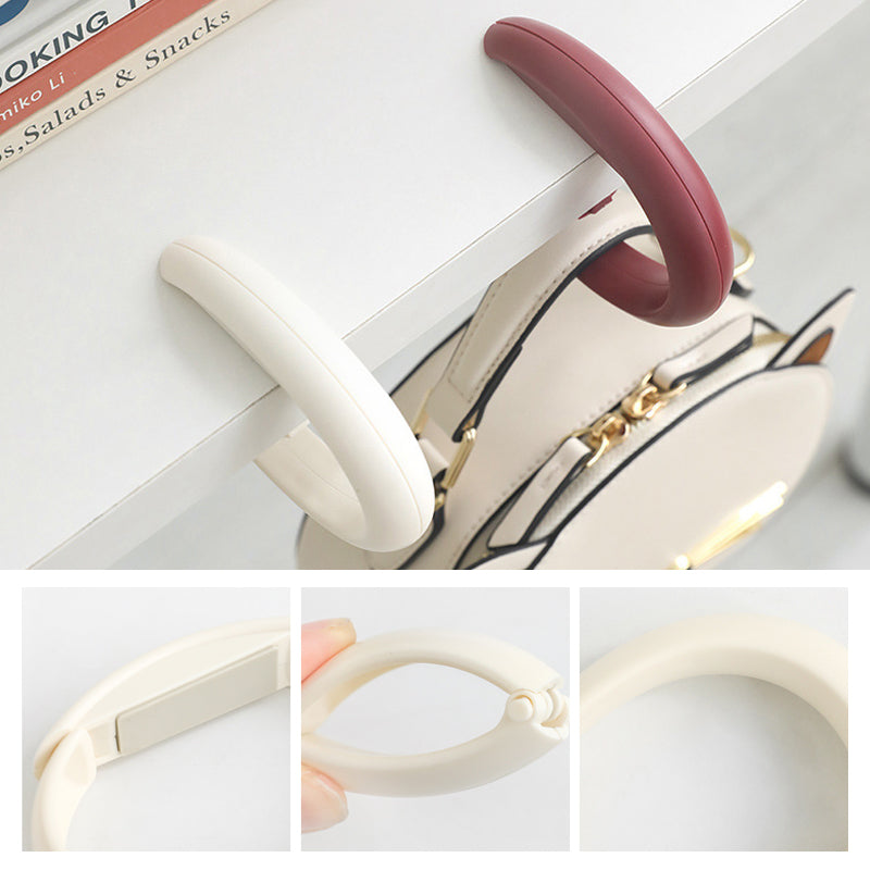🎁Haken für Handgepäck-A Mini-Hochleistungs-Taschenhalter in einem ausgefallenen runden Haken, der stabil an verschiedenen Tischkanten halten kann. So können Sie im Handumdrehen eine platzsparende, praktische Hängeaufbewahrung für Ihre Taschen oder andere Gegenstände schaffen. Sie müssen Ihre wertvollen Geldbörsen nicht mehr mitnehmen, wenn Sie sich hinsetzen oder umständlich auf Ihrem Schoß liegen. Es hilft bei allen Arten von Taschen. Perfekt, wenn Sie unterwegs sind. Keine Sorge, dieser Halterungshaken ist leicht und kompakt, sodass Sie ihn problemlos in Ihrer Tasche tragen oder bei Nichtgebrauch am Taschengriff einhängen können.