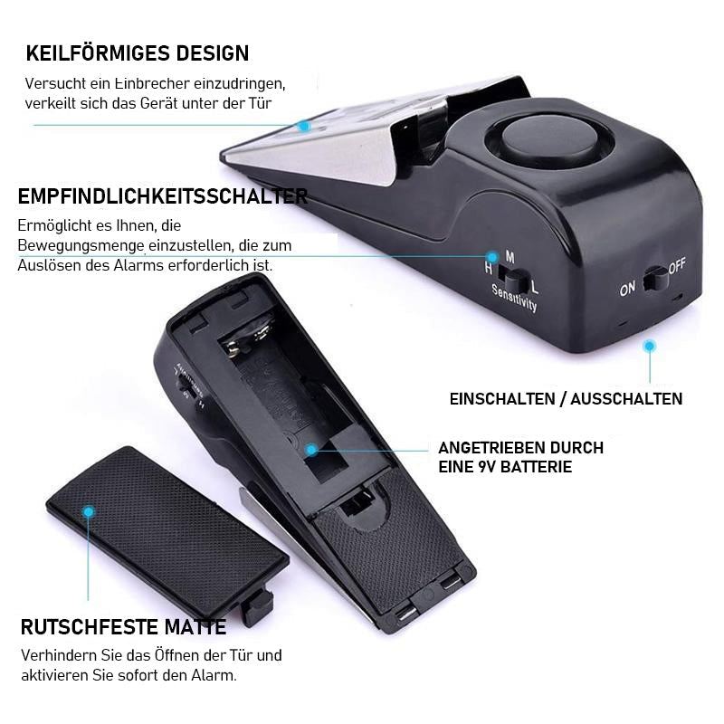 Stellen Sie diesen Sicherheitsalarm jetzt einfach hinter jede Tür oder jedes Fenster und Ihre Sicherheit ist garantiert.