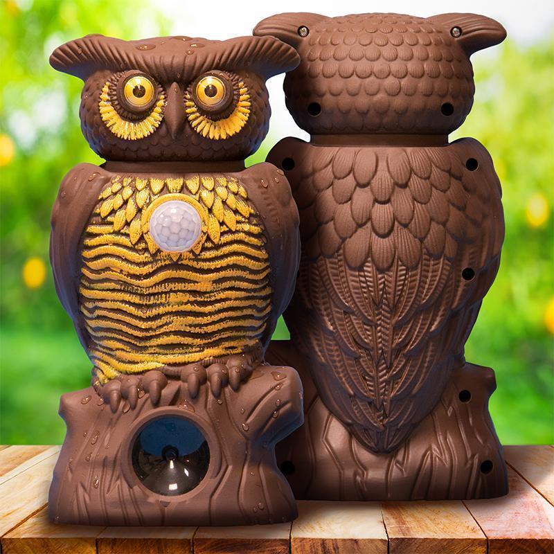 Der ultra-realistische, lebensechte Look verleiht ihm Vogelscheuchen. Es gibt eine ultraschallige Explosion, die Lebewesen schnell wegschickt. Sie hören nichts, aber die Schallwellen sind für 🐾 Waschbären, Rehe, Kaninchen, Eichhörnchen, Mäuse und viele mehr unangenehm. Bedrohliche rote, leuchtende Augen erschrecken selbst hartnäckigste Schädlinge.