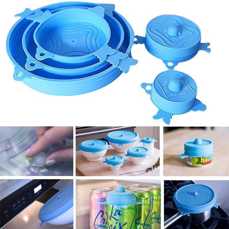 - Vielseitigstes Deckelset: Set enthält 6 verschiedengroße Silikondeckel für unterschiedlicher Größe und Form Behälter: Dosen, Becher, Salat-Schüsseln, Töpfe,Pfannen usw.
