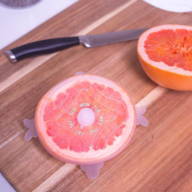 Das Beste an dem Universaldeckel ist das Zifferblatt oben, mit dem Sie den Wochentag angeben können, an dem Sie Ihr Essen eingepackt haben. Jetzt haben Sie eine bessere Vorstellung davon, wie alt diese Reste sind. Kein Erraten mehr, nur um daran zu schnuppern und fast zu kotzen, bevor es geworfen wurde. Lass es einfach nicht länger als eine Woche sitzen!