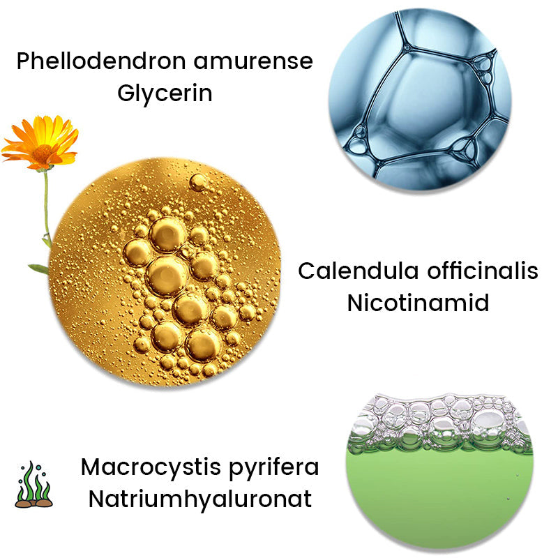 Wirksamkeit: feuchtigkeitsspendend, Ölkontrolle, schrumpfende Poren, aufhellender Hautton