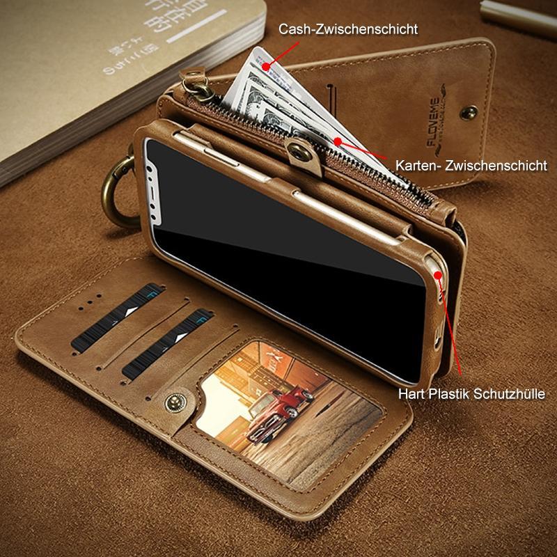 Die Geldbörse ist sehr geeignet für das Handy. Das Design der Tasche ist auch sehr klassisch und geeignet für das Alltagsleben. In der Geldbörse kann man Karten, Geld usw. stellen. Außerdem ist die Börse auch eine Handy Schutzhülle und kann das Handy schuützen.