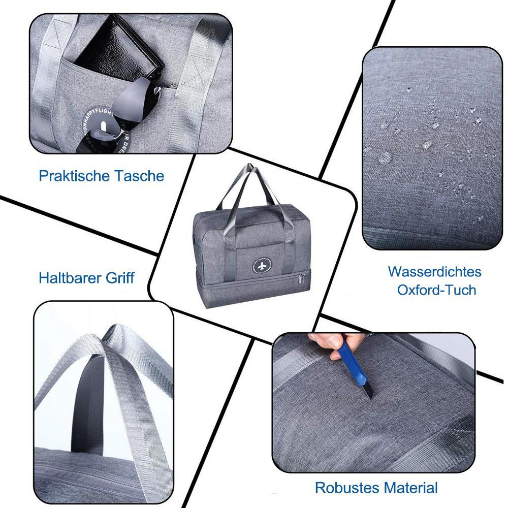 Trockene/Nasse Abfahrt Design - Das feuchte, getrennte Fach ist speziell für die Aufbewahrung nasser Kleidung nach dem Training konzipiert. Bietet zusätzliche Festigkeit und dauerhafte Leistung, ohne Nähte zu reißen. Das separate, belüftete Schuhfach sorgt dafür, dass Ihre Turnschuhe und Ihre schmutzige Kleidung von Ihrem Tagesoutfit oder dem gelegentlichen Wechseln der Kleidung getrennt werden. Es kann auch als trocken nasses, separates Badetasche, Strandtasche, Tanztasche, Reisetasche verwendet werden.