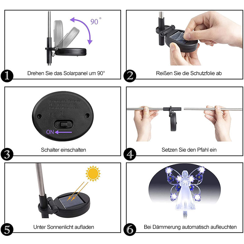[Hochwertiges wasserdichtes Design] Größe: 913 * 79 cm. Diese ewigen Engelslichter bestehen aus langlebigem Edelstahl und hochwertigem Kunststoff und das Licht ist wasserdicht. Jeder Solarlicht-Engelfriedhof verfügt über 7 kaltweiße LEDs, die Ihrem Garten einen eleganten Glanz verleihen.