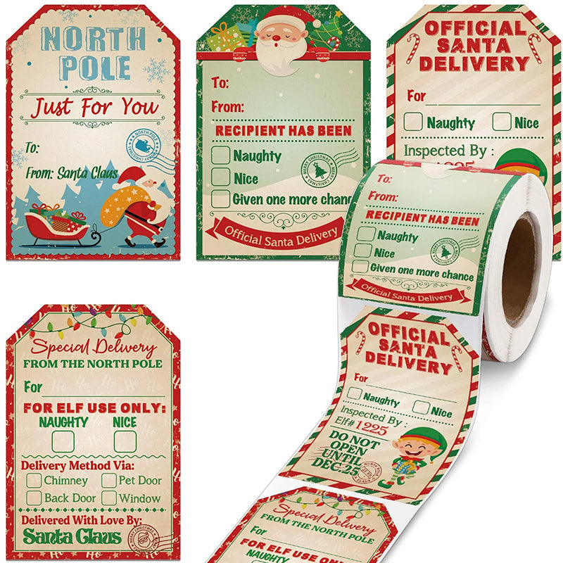 🎅Ausreichende Menge: Sie erhalten 1 Rolle Weihnachtsmann-Geschenkanhänger-Etiketten in 4 verschiedenen Stilen, 50 Stück für jedes Design, 200 Stück insgesamt, genug, um Ihren verschiedenen dekorativen Anforderungen an Weihnachten gerecht zu werden
