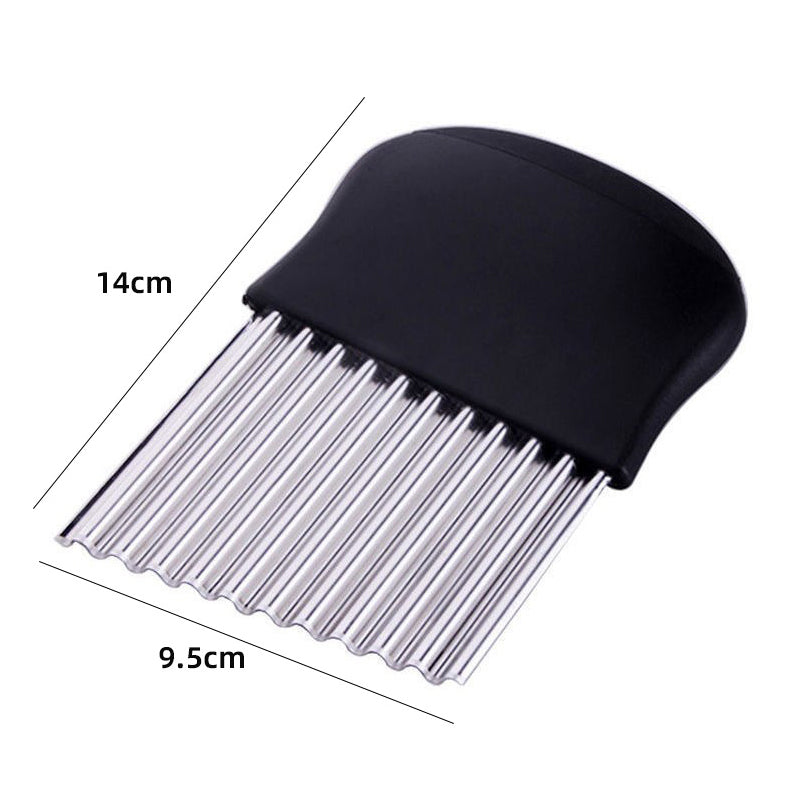 Daher ist das gewellte Klingendesign für Lebensmittel wie Kartoffeln und Gurken, die ihre Textur beibehalten müssen, besser geeignet.