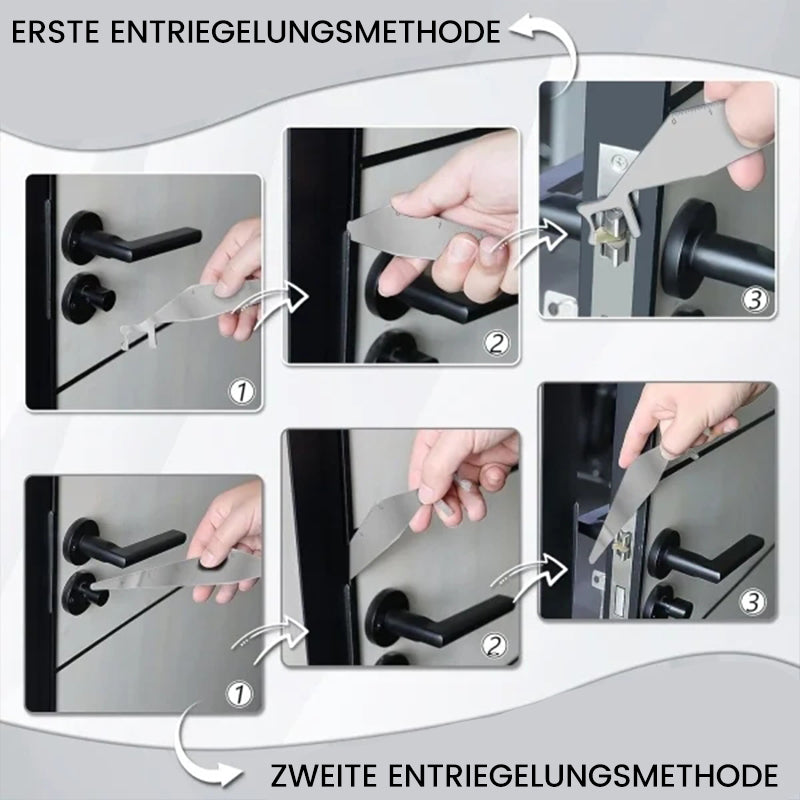 Außerdem enthält es eine robuste integrierte Klinge, die Holzbeschläge an den Rahmen von Flügeltüren im Inneren von Häusern durchbohren kann.⚡ Langlebig und unerschütterlich vertrauenswürdig Hergestellt aus erstklassigem Edelstahl 301 ist der FirePik ein vielseitiges Werkzeug, das für die Bewältigung der schwierigsten Situationen ausgelegt ist. Die Funktion dieses Werkzeugs besteht darin, das Schließblech des Schlosses zu betätigen, ohne das Schloss, die Tür oder den Rahmen zu beschädigen.