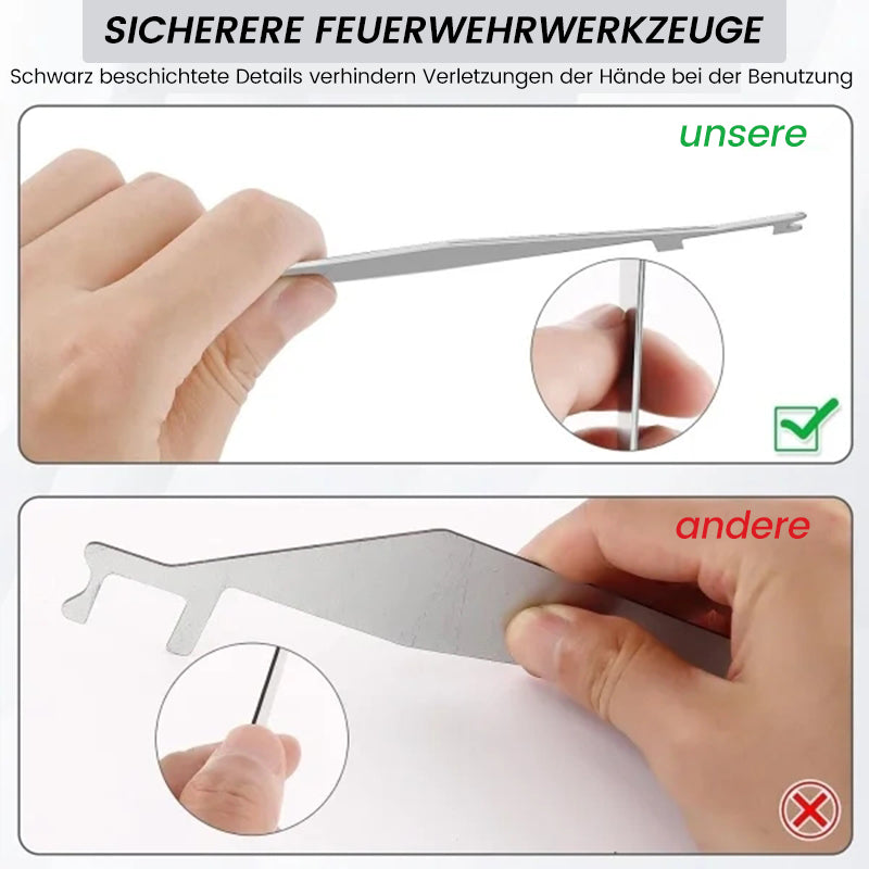 Verbessern Sie Ihre Notfallmaßnahmen - Ihr zuverlässiger Rettungsanker in kritischen Momenten. Eröffnen Sie neue Möglichkeiten mit unserer FirePik Pro - der ultimativen Spreizstange für Feuerwehrleute! Jede Sekunde zählt. Das ultimative Greifwerkzeug für Feuerwehrleute! Auch bekannt als "Williams-Schlüssel", ist dieser innovative Türöffner ein Muss für Feuerwehrleute und Notfallteams. Es funktioniert effektiv an vandalensicheren Paneelen, Aufzugskontrollräumen, kommerziellen Nutztüren und einer Vielzahl anderer nach außen schwingender Türen aus Metall oder Holz.