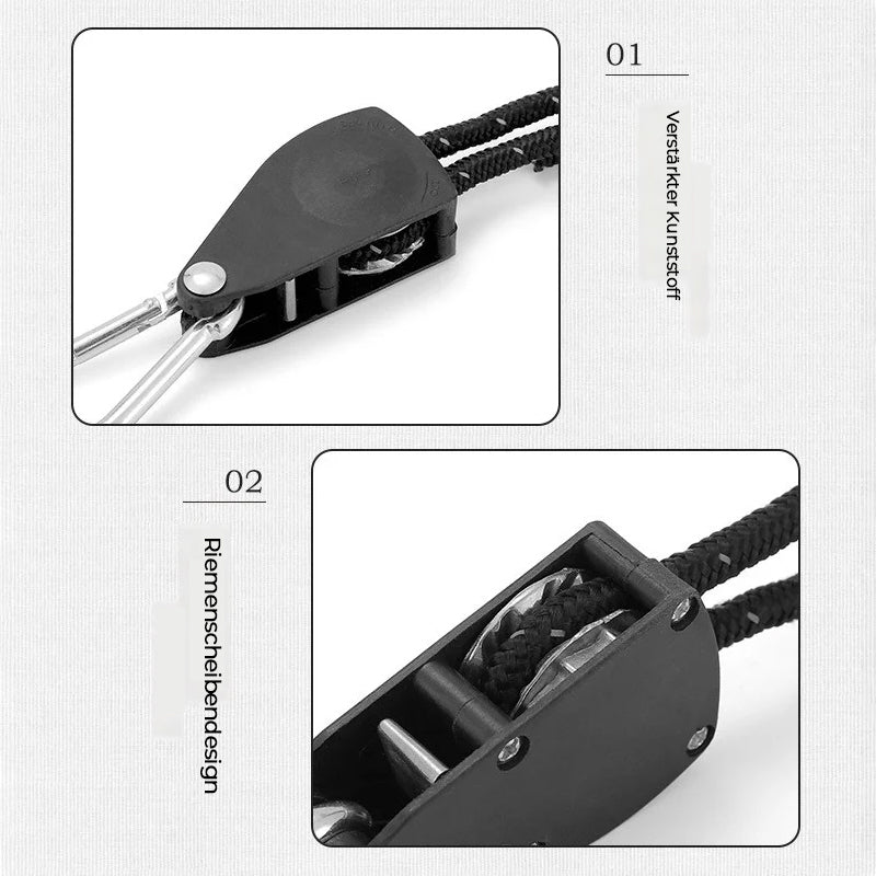 Leicht zu bedienen: Sie können die Länge anpassen, indem Sie den Daumenhebel drücken, um die Feder zu lösen. Verstellbares Riemenscheibendesign und tragende Schnalle für schnelle Installation und feste Fixierung für Ihren Komfort.