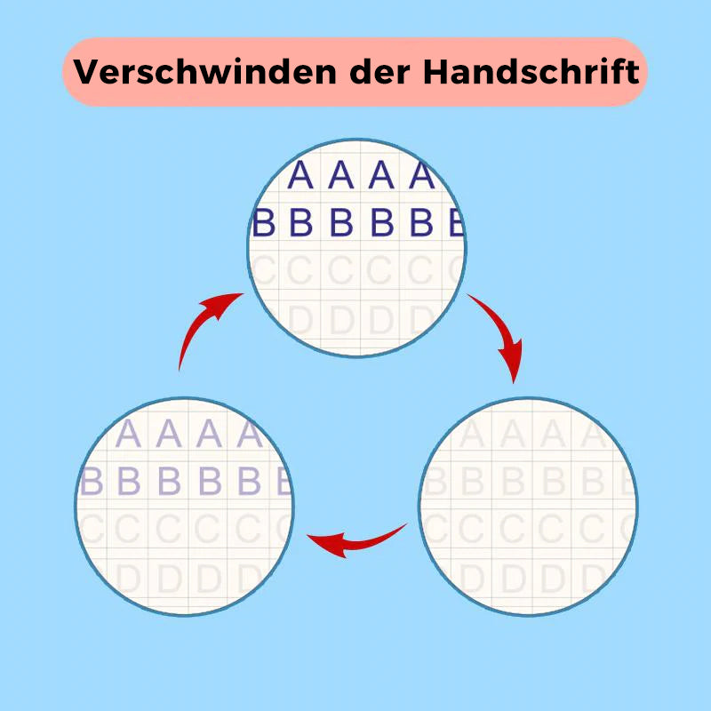 Wiederverwendbar innerhalb von 10 Minuten - Jedes Buch und Bündel wird mit einem Stift und magischen Tintennachfüllungen geliefert. Die magische Tinte verschwindet in zehn Minuten nach dem Schreiben und das Buch ist bereit für einen weiteren Versuch! Wenn Sie möchten, dass die Tinte bleibt, können Sie einen Standard-Kugelschreiber verwenden. Der mitgelieferte Stiftgrifftrainer bringt Ihrem Kind schon in jungen Jahren den richtigen Griff bei.